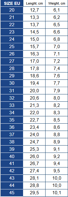 Size charts may vary between different manufacturers. The most reliable way to choose the right size is to measure your foot and compare the results with the manufacturer’s size chart.